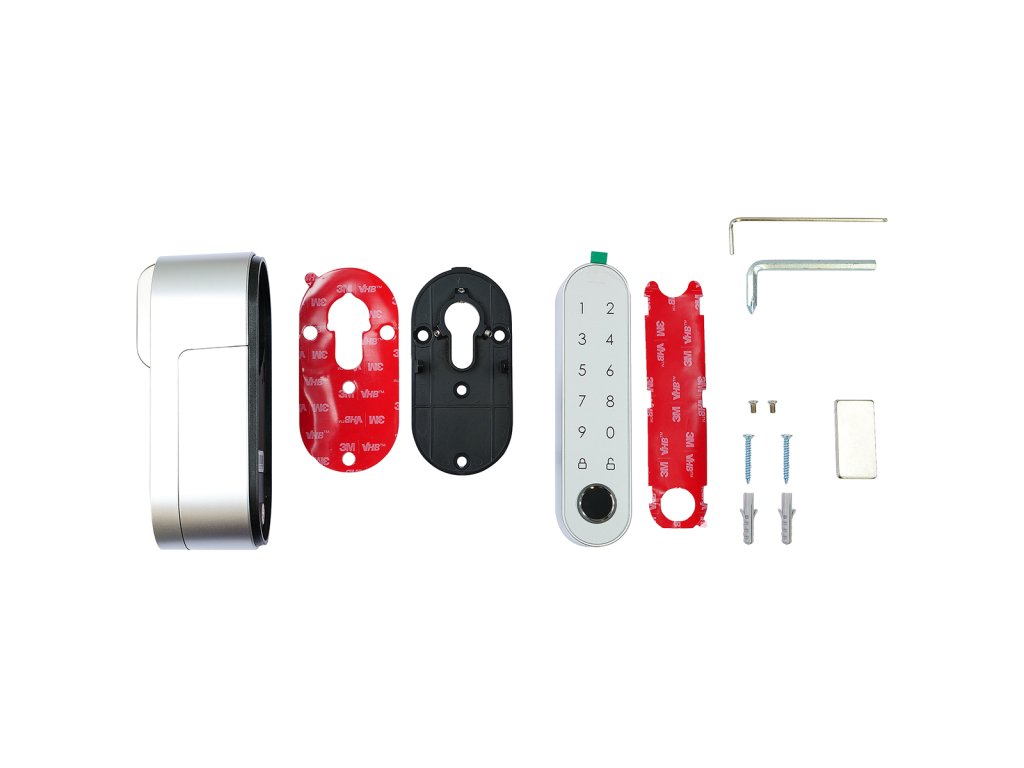 - Set obsahuje chytrý motor a klávesnici se snímačem otisků prstů