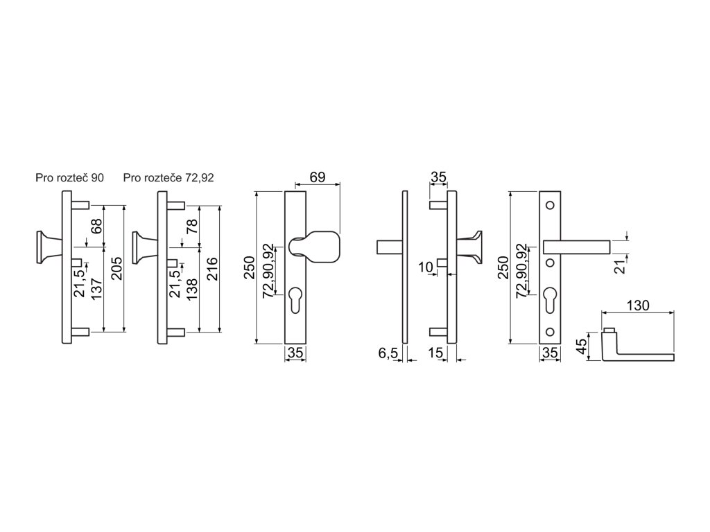 Dodáváno pro rozteče a tloušťky dveří: