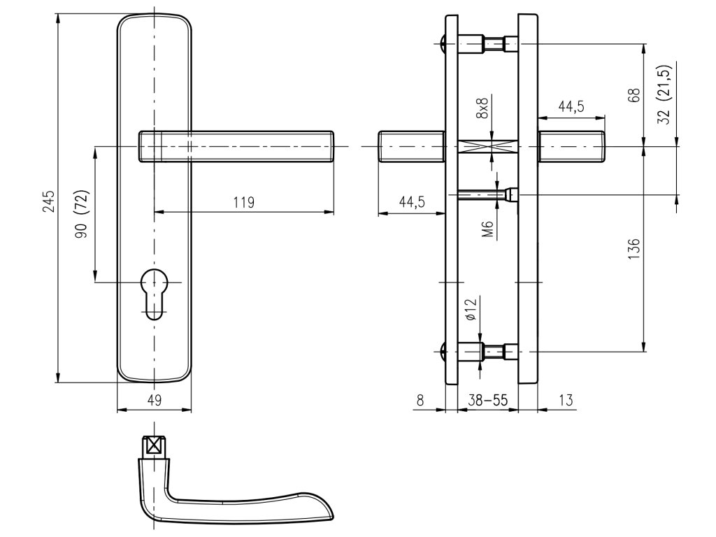 - Pro tloušťku dveří 38-55 mm - Pro tloušťku dveří větší než 50 mm nás kontaktujte - je nutné objednat delší trn a spojovací šrouby