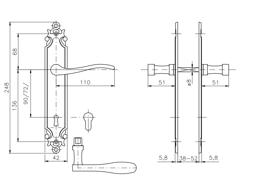 Pro tloušťku dveří: 38-52 mm
