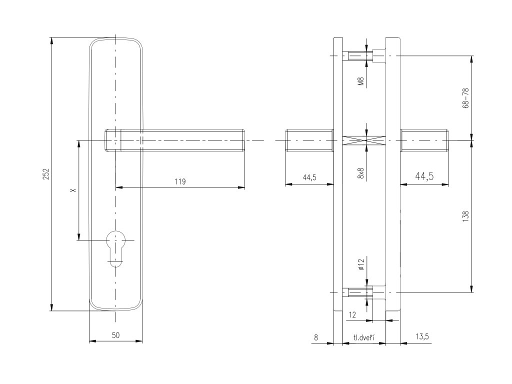 - Pro tloušťku dveří 40-50 mm - Pro tloušťku dveří větší než 50 mm nás kontaktujte - je nutné objednat delší trn a spojovací šrouby